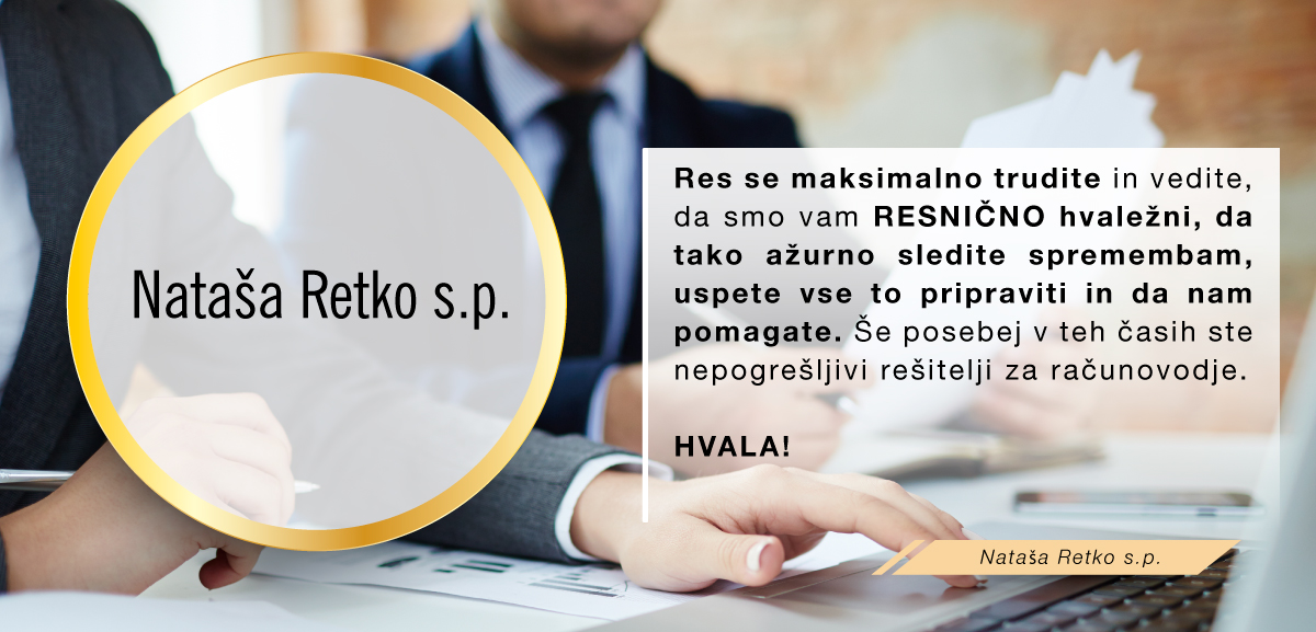 Vaš program Birokrat uporabljamo od leta 2010 in smo zelo zadovoljni z njim; je enostaven, dober in prijazen. Ga redno posodabljate in dopolnjujete z zakonskimi spremembami. Kadar koli smo potrebovali pomoč smo bili hitro in prijazno sprejeti od Vaših ljudi. Želimo si enak odnos tudi v prihodnje!