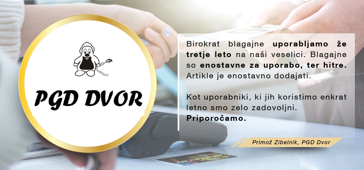 Birokrat je enostaven program s široko paleto funkcij. Davčna blagajna nam deluje brezhibno, celoten program pa je pregleden in zanesljiv za uporabnika, katerega redno posodabljate in nam olajšujete delo. Že od samega začetka ste odzivni, prijazni ter nam nudite podporo.