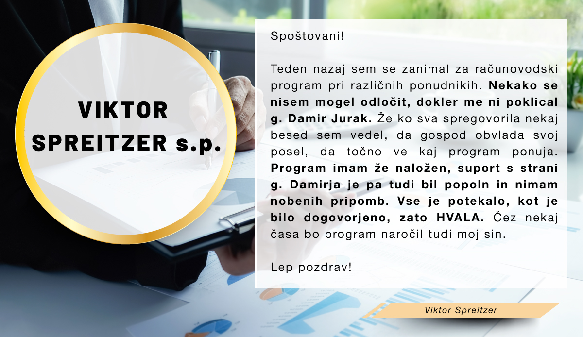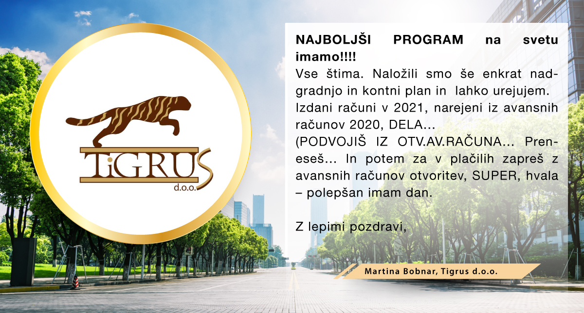 S programom smo zadovoljni, saj ga uporabljamo že od leta 2000 naprej.
